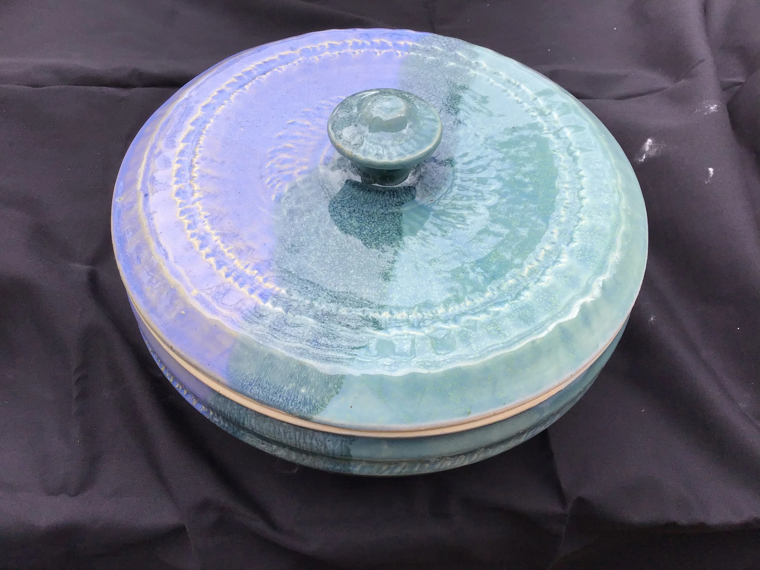 I make functional pottery, both wheel thrown and hand built. A lot of what I make draws from nature. I like the repetitive patterns carved into the sand by the ocean and the perfect forms of seashells. The ever-changing sky plays a big part in my watercolor paintings as well. I also enjoy painting scenes from places I have visited and peoples’ classic cars.